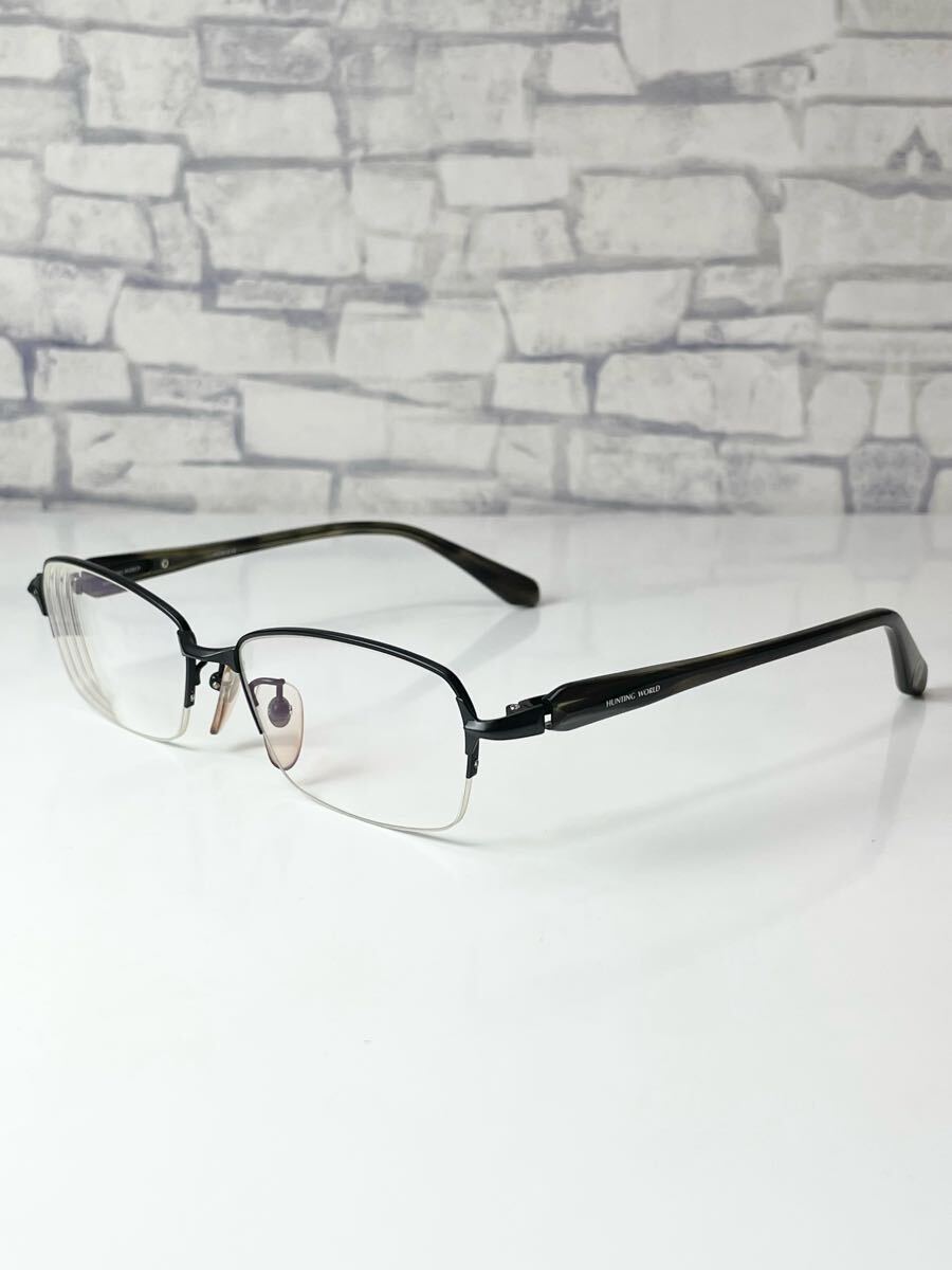 > HUNTING WORLD HTW-018 ハンティングワールド ハーフリム スクエア型 マットブラック 眼鏡 良品