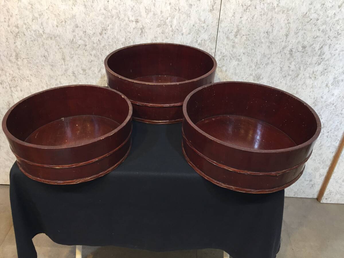 - 『 木製たらいセット 』3個セット 桶 漆塗り? 昭和レトロ アンティーク インテリア ★古時家★