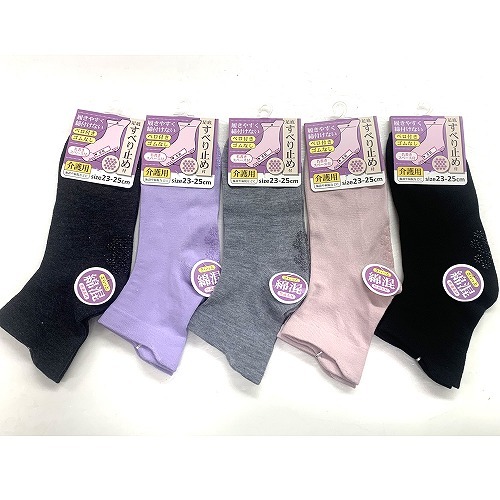 > レディース靴下 綿混 『名前が書ける』 滑り止め付付き ベロ付ゴムなしゆったりソックス 5足アソートセット 23-25cm 【HO-0159-5】