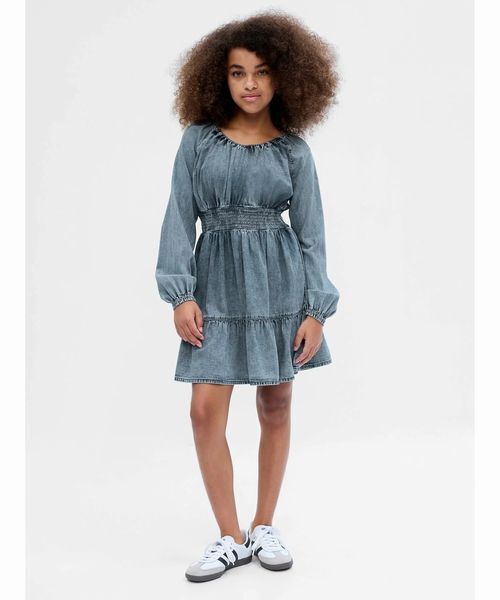 > 定価6,990円 新品 GAP ギャップ ウォッシュウェル パフスリーブ スモッキングギャザー デニムワンピース