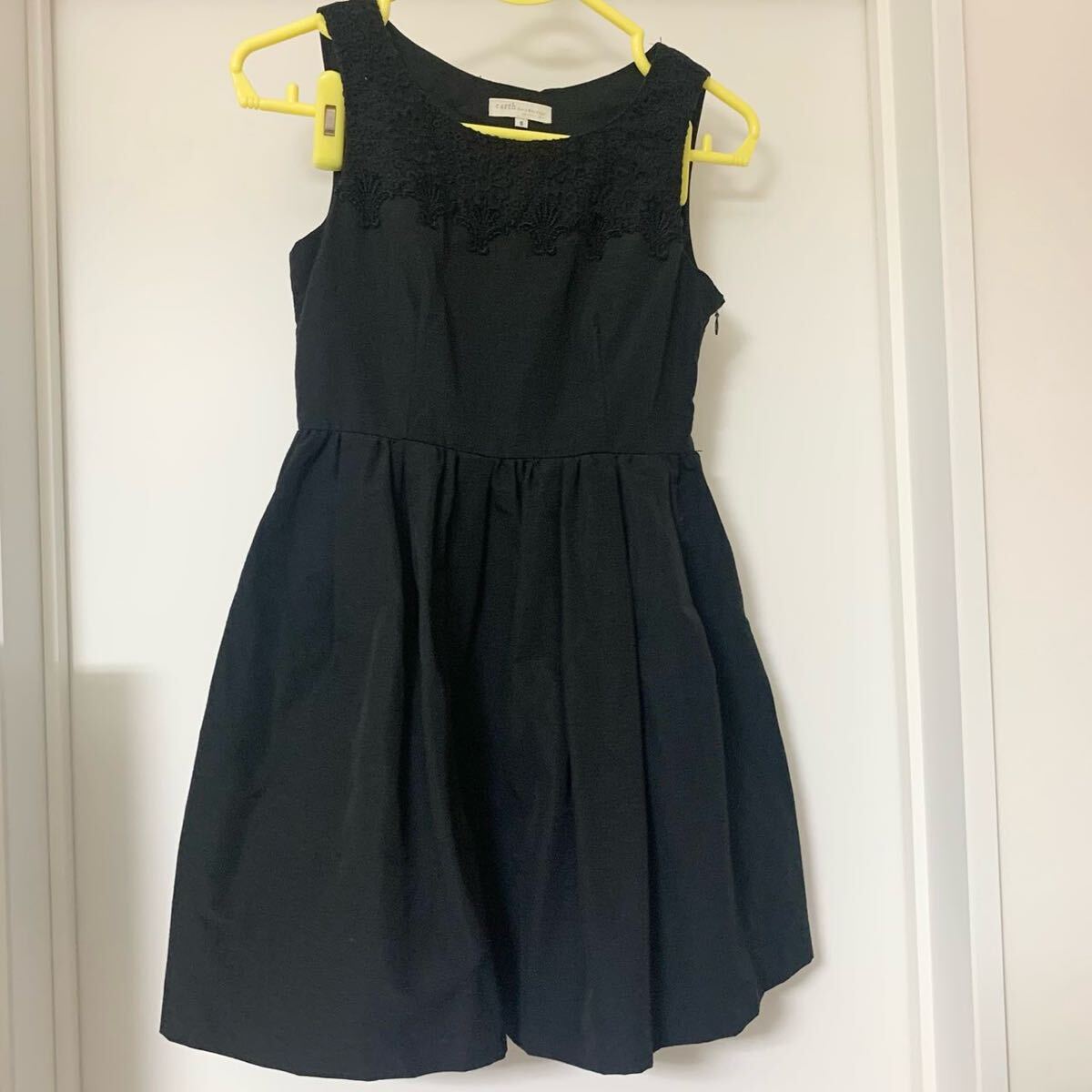 - ノースリーブワンピースドレス 無地黒レース ミニワンピース ブラック S ミニワンピース お呼ばれ パーティードレス