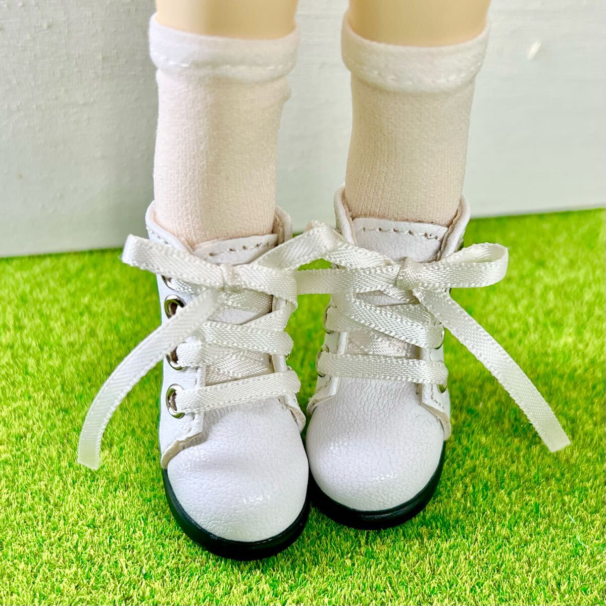 - 【精天使用】ホワイト リボン レースアップ ブーツ シューズ 靴 白
