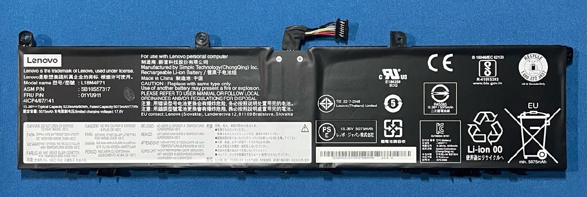 - 純正新品 Lenovo ThinkPad P1 Gen1 X1 Extreme Gen1 Gen2等用 バッテリー 01YU911