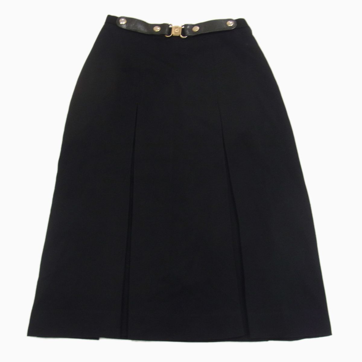 > 70年代 ヴィンテージ 希少 レア◇CELINE 金ビット×レザー ボックス プリーツ スカート ブラック セリーヌ レディース