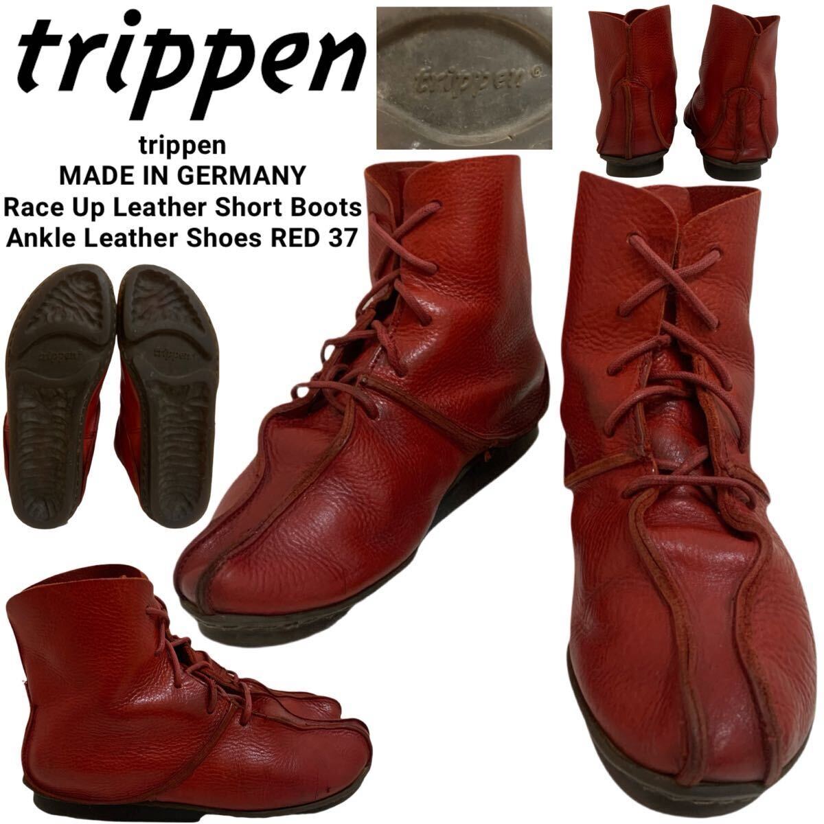 > trippen トリッペン MADE IN GERMANY ドイツ製 レースアップ レザーショートブーツ アンクルレザーシューズ レッド 37(23.5-24) アーカイブ