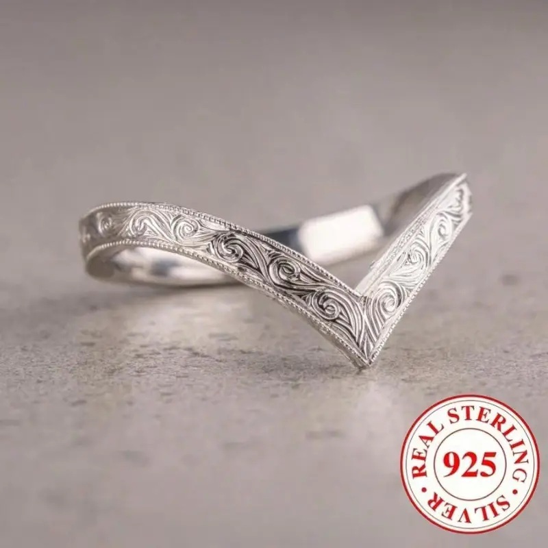 - シルバー925V字リング男女兼用指が細く綺麗長く見える素敵な綺麗な指輪スクロール(波)意味・途切れない幸せ」永遠の愛」チャレンジ 効果