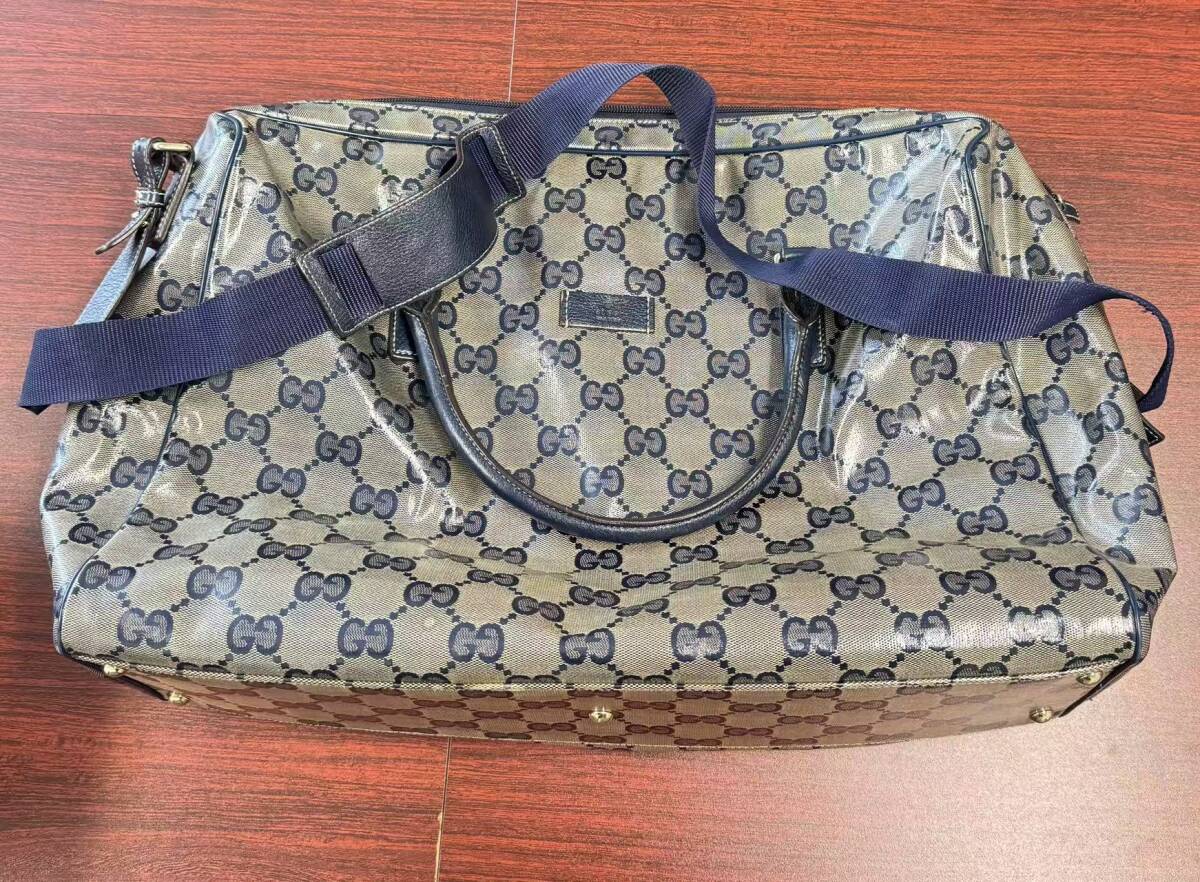 - 中古 GUCCI グッチ GGクリスタル 2WAY ネイビー ユニセックス PVCキャンバス/レザー ボストンバッグ