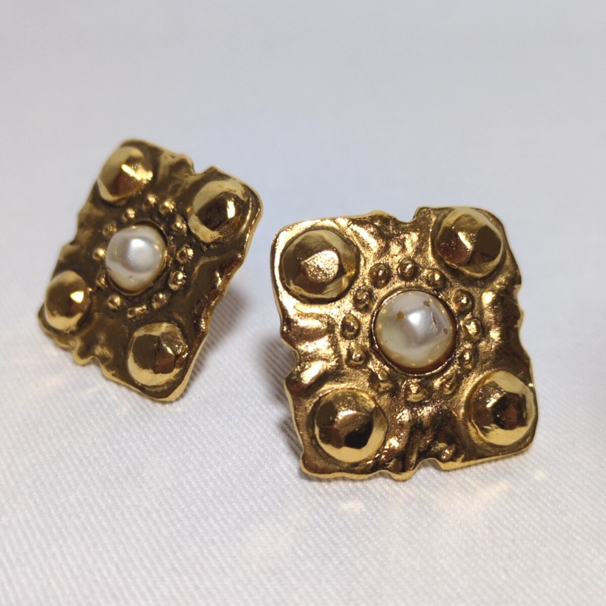- 良好 良品 シャネル CHANEL ゴールド フェイクパール ヴィンテージ ひし形 イヤリング 23