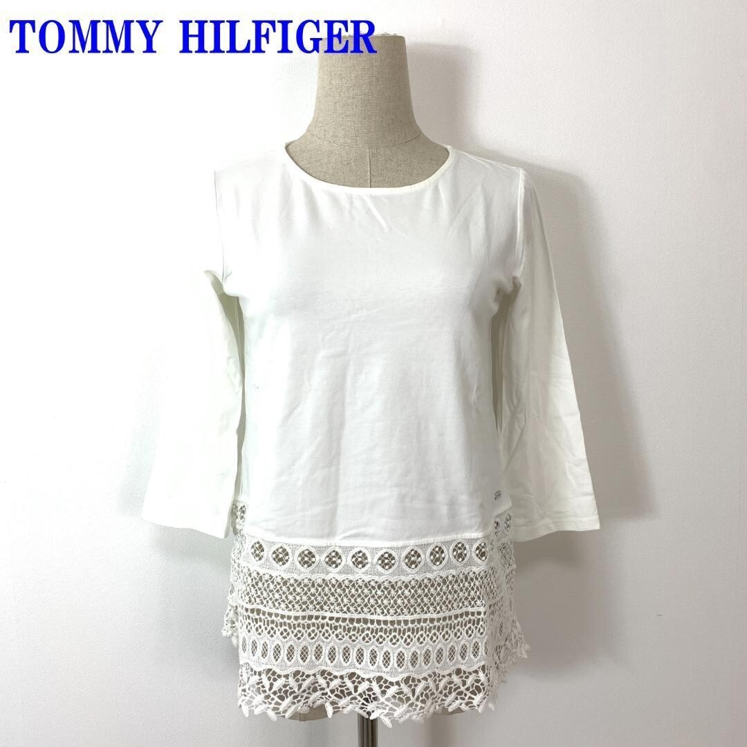- トミーヒルフィガー七分袖カットソー 白TOMMY HILFIGER 綿 レース M C2454
