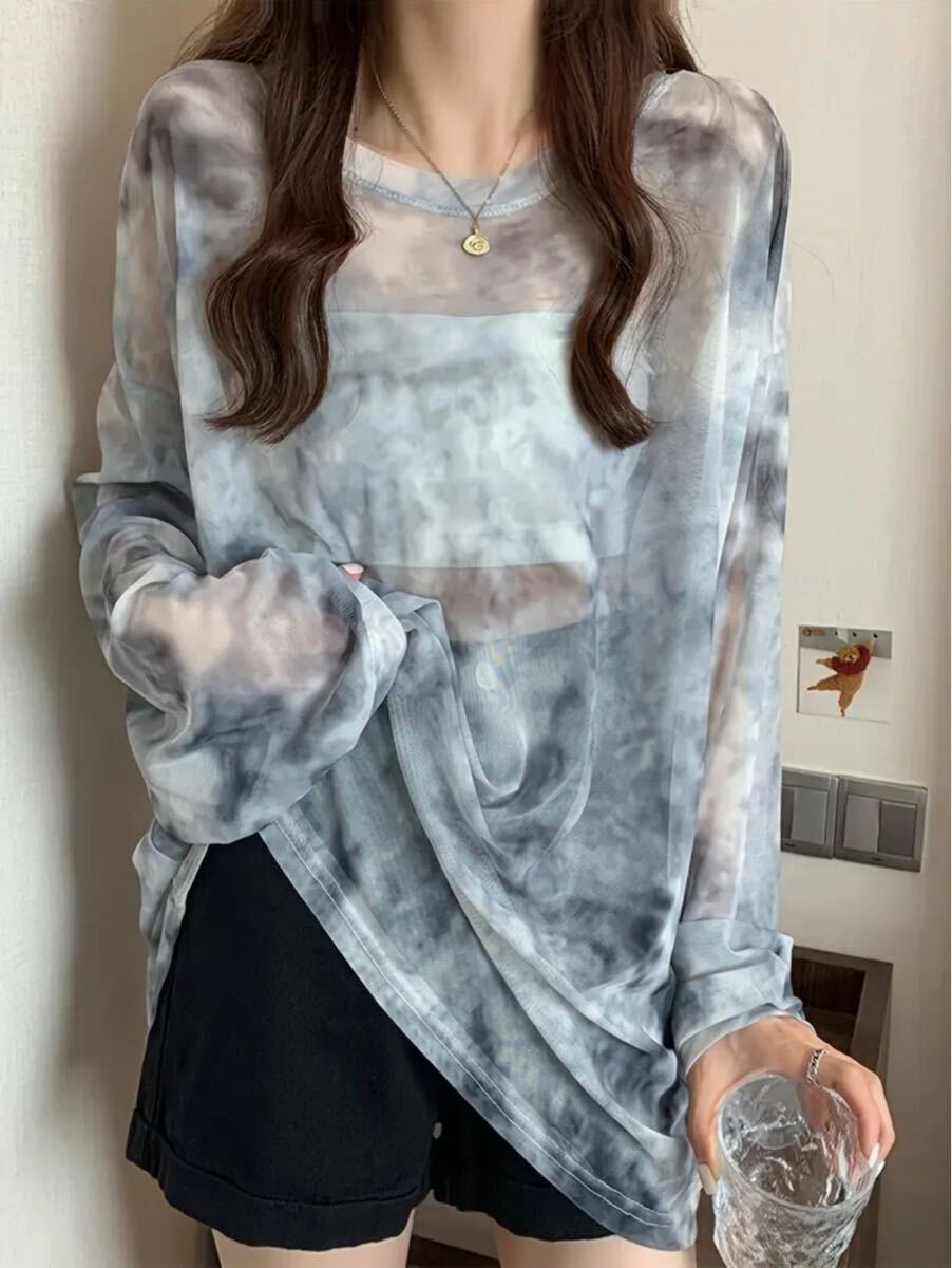 - シースルーシャツ シースルートップス 長袖 タイダイ柄