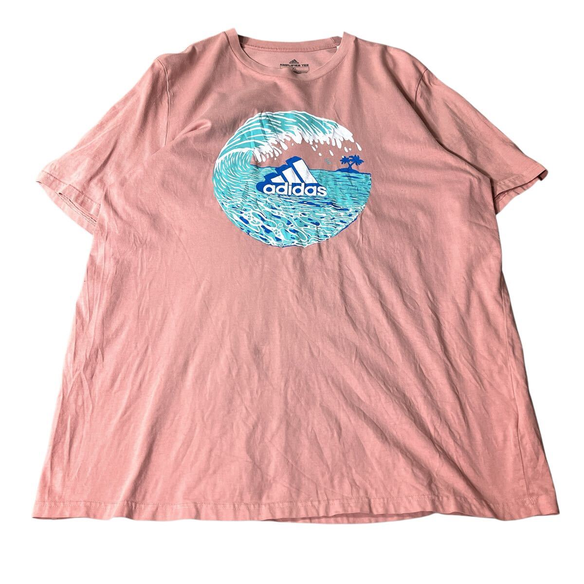 > adidas アディダス Tシャツ 半袖Tシャツ クルーネック コットン 古着 トップス ピンク レディース XL