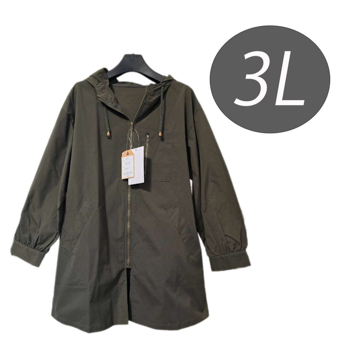 - ●新品/無地/スプリングコート/3L/カーキ系/レディース/フード付き●あ1183