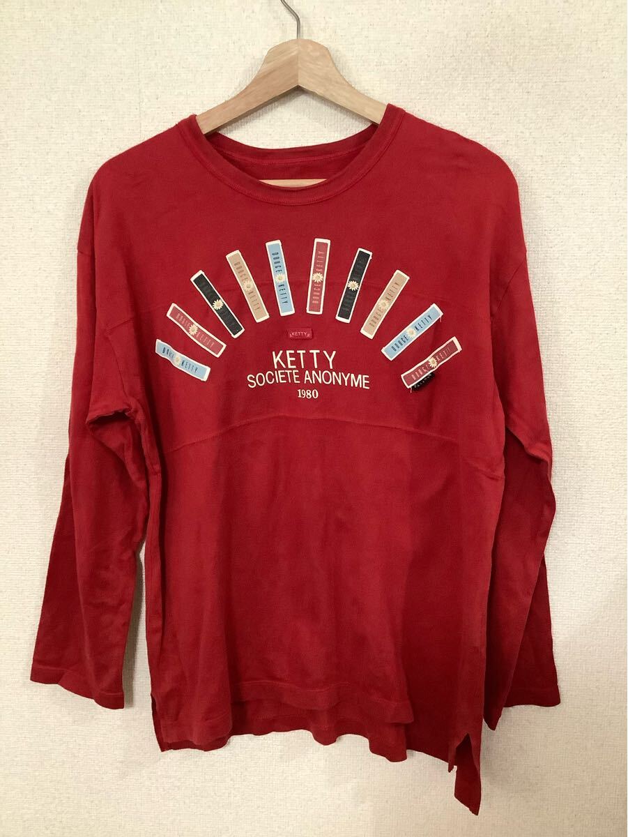 - DOUCE KETTY ケティー ワッペン付き ロゴ長袖Tシャツ カットソー レッド レトロ 昭和 セレクト 古着 M