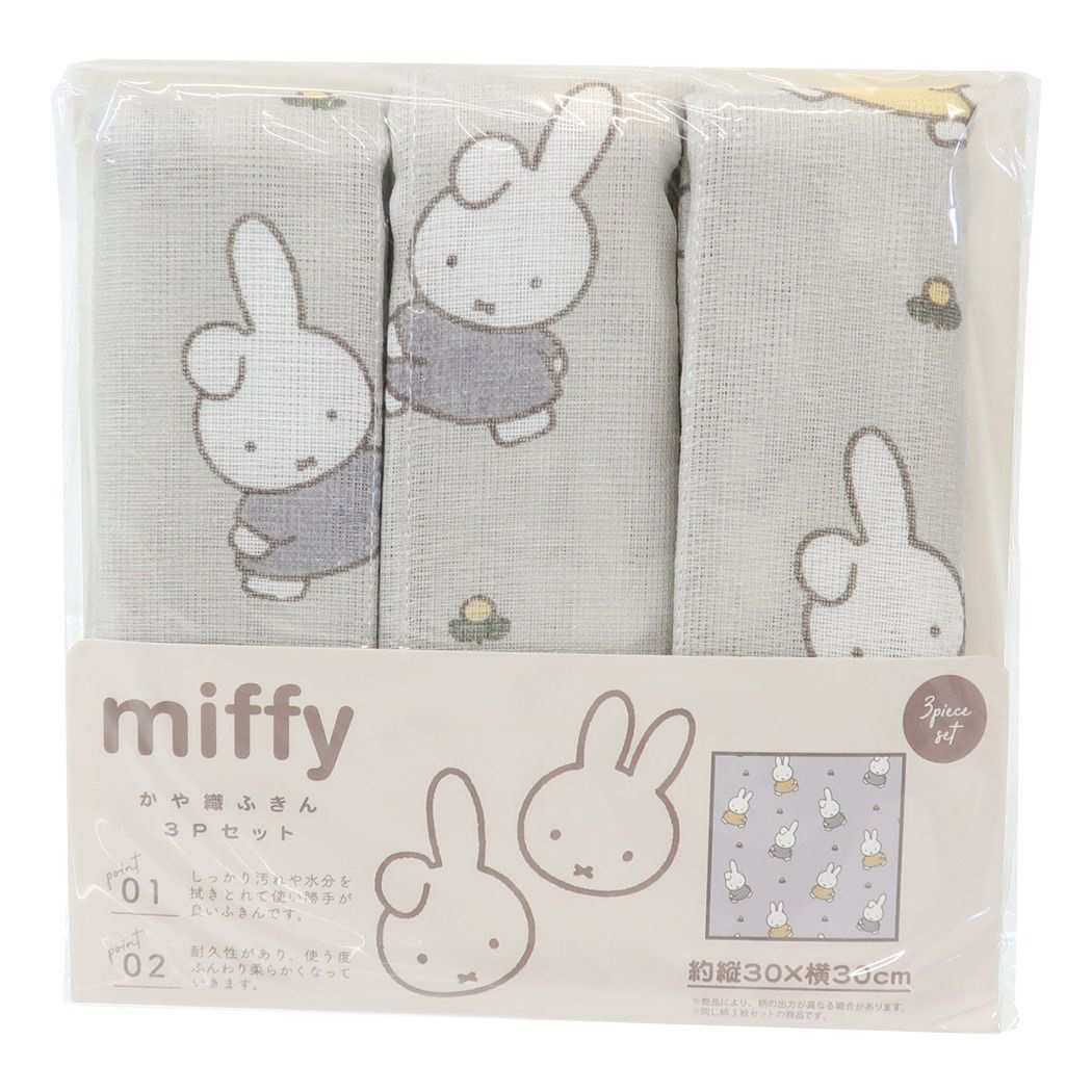 - ミッフィー 絵本キャラクター キッチンクロス かや織りふきん 3Pセット ミッフィーとダーン ディックブルーナ
