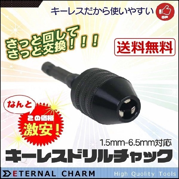 - 【全国一律送料無料】ドリルチャック キーレスドリルチャック 1.5-6.5mm 六角軸 6.35mm 電動ドリル 正回転専用