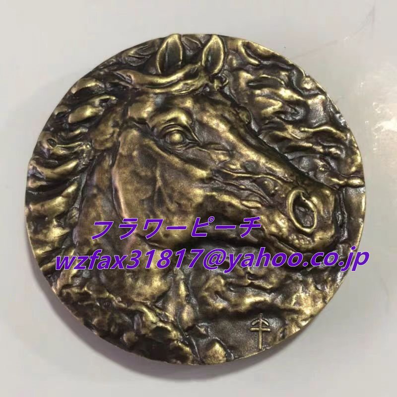 > 真鍮十二支記念銅章 浮き彫り 陽刻紋絵 十二支 馬 法器ペンダント裝身具 護符開運風水 お守り 厄除け 装飾 賞物 収蔵