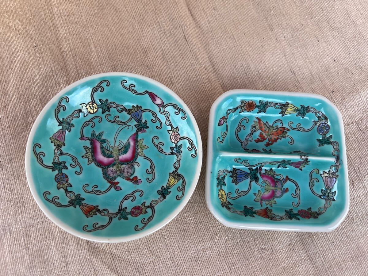 > ◆アンティーク 中国景徳鎮 ソーサー 小皿セット◆B-2425 重さ238g 飾り皿
