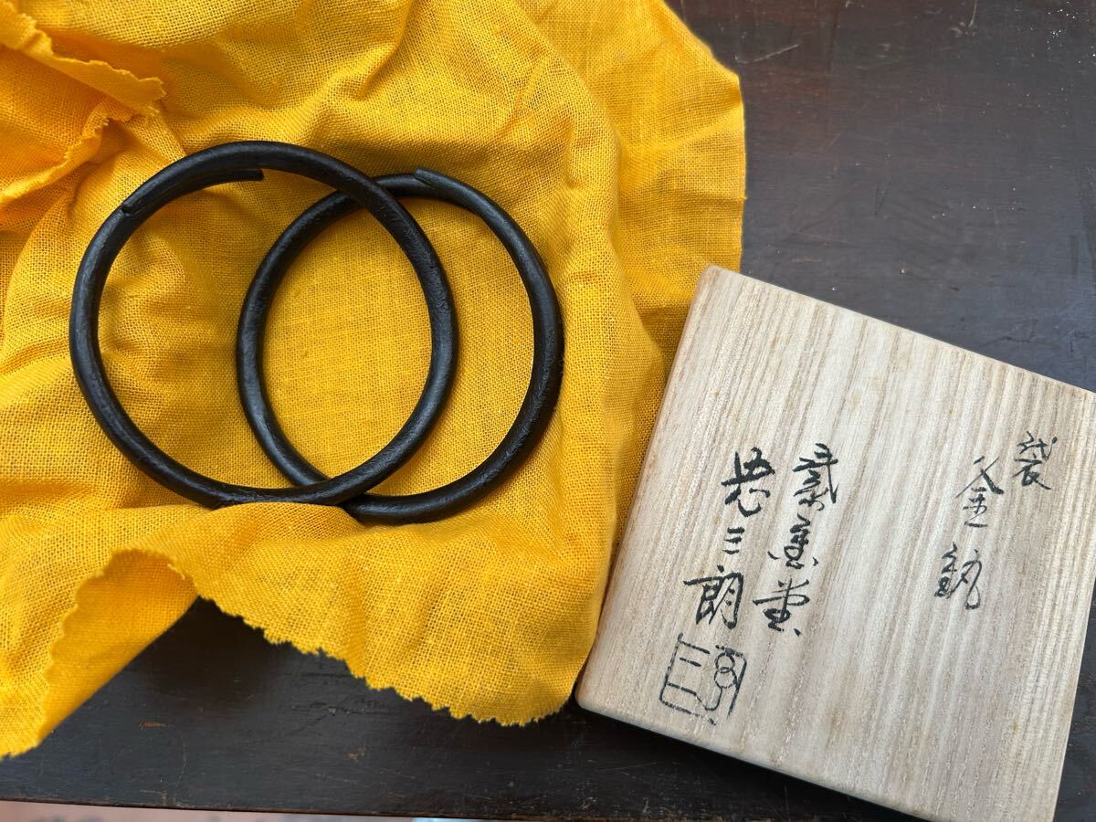 - 茶道具 炭道具 釜鐶 鉄細 加藤了三作 12代 加藤忠三郎 釜師 美品 共箱
