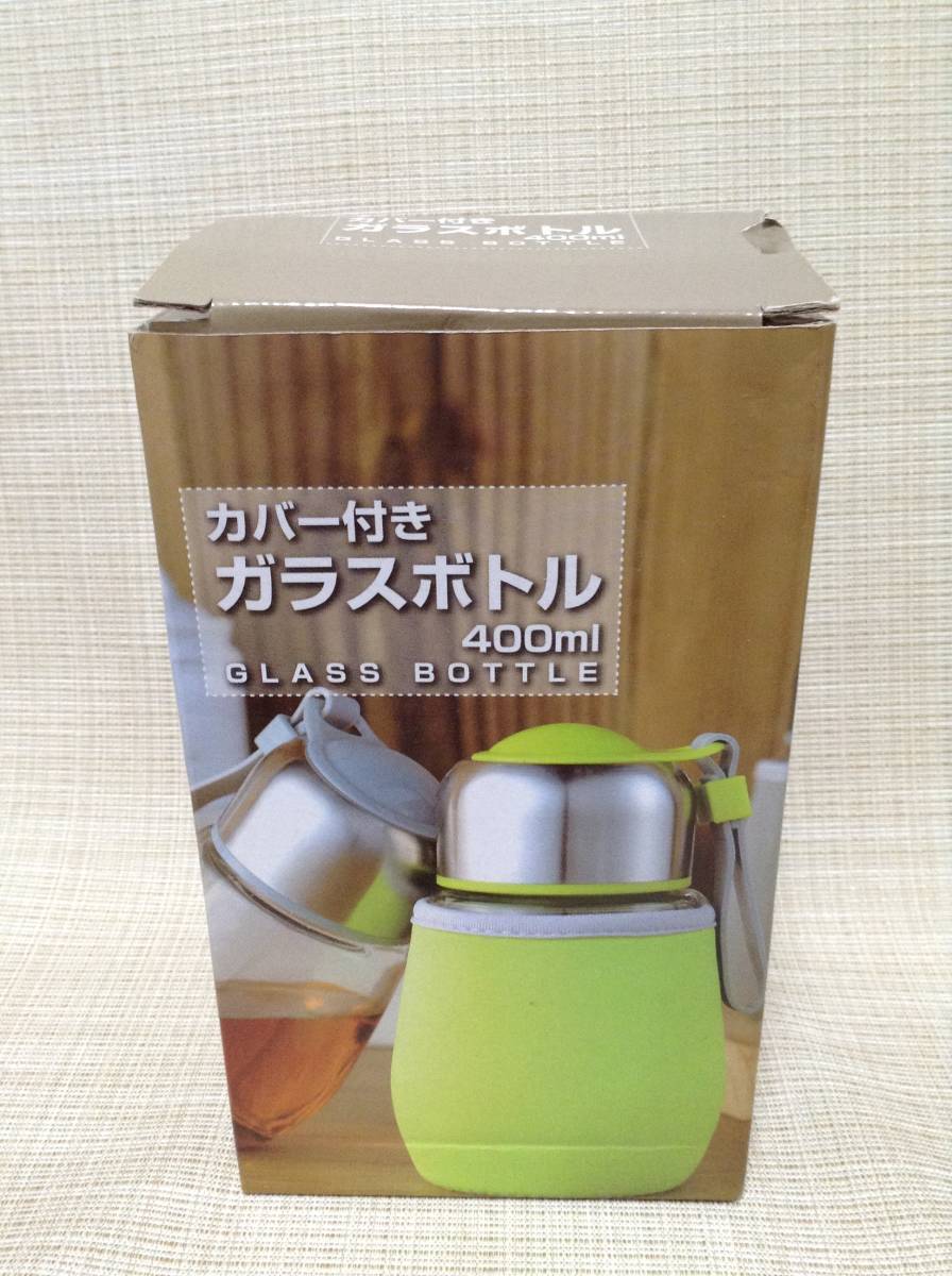 カバー付き ガラスボトル 400ml ブルー(青) マイボトル,すいとう,水筒