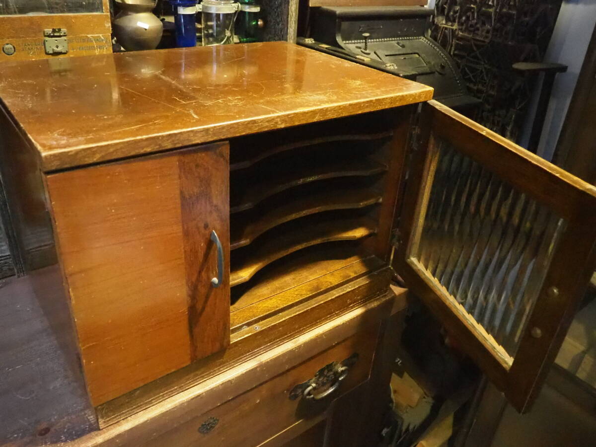- 【木製レコードキャビネット】LP/EP盤昭和レトロ本棚ガラス戸収納ケース箪笥古道具アンティーク骨董インテリア引出し収納インダストリアル
