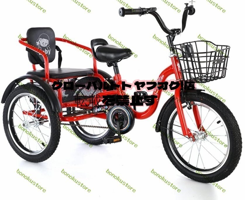 - 子供用シングルスピード三輪車 16 インチの安全なクルーズ バイク 携帯用三輪自転車 バスケットと背もたれ付き お子様へのギフトに最適 赤