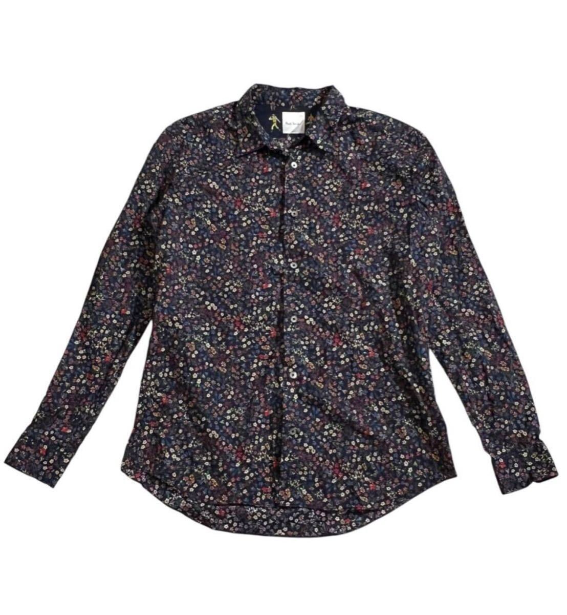 > 送料無料 ■ Paul Smith ポールスミス ■ 小花 ミニフラワー 総柄 長袖 コットン ボタンシャツ ネイビー系 L