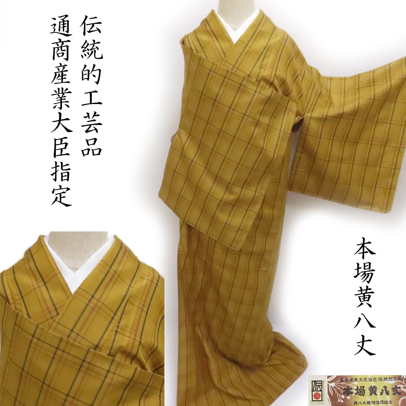 > Club藤★本場黄八丈 紬 草木染め手織り平織紬 大臣指定工芸品 カジュアル 小紋 御仕立上り(3407)