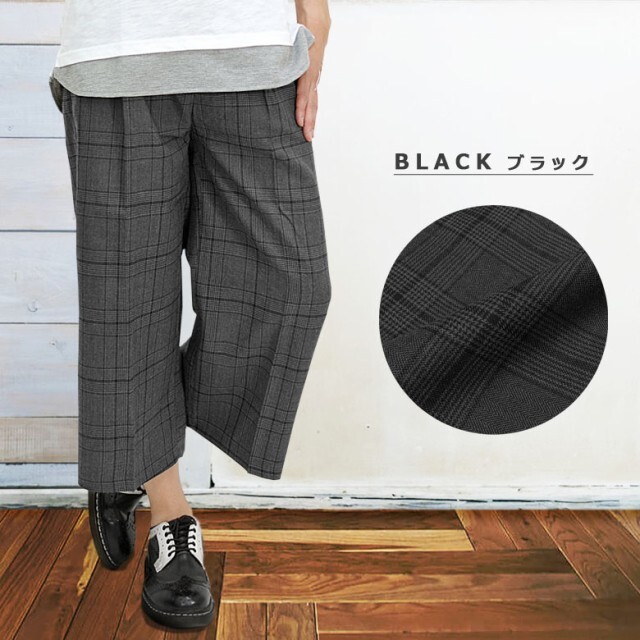 - グレンチェック柄ワイドパンツ メンズパンツ ワイドパンツ バギーパンツ ガウチョパンツ rv7433新品 ブラック M
