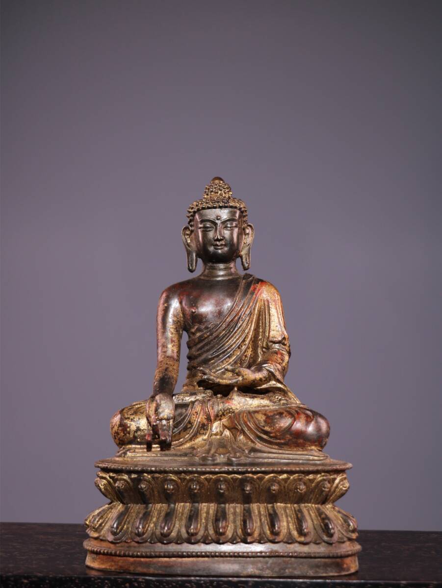 - 『館蔵珍品 銅製 泥金 朱砂 阿彌陀仏』置物 賞物 貴重物品 収蔵品 中国古美術