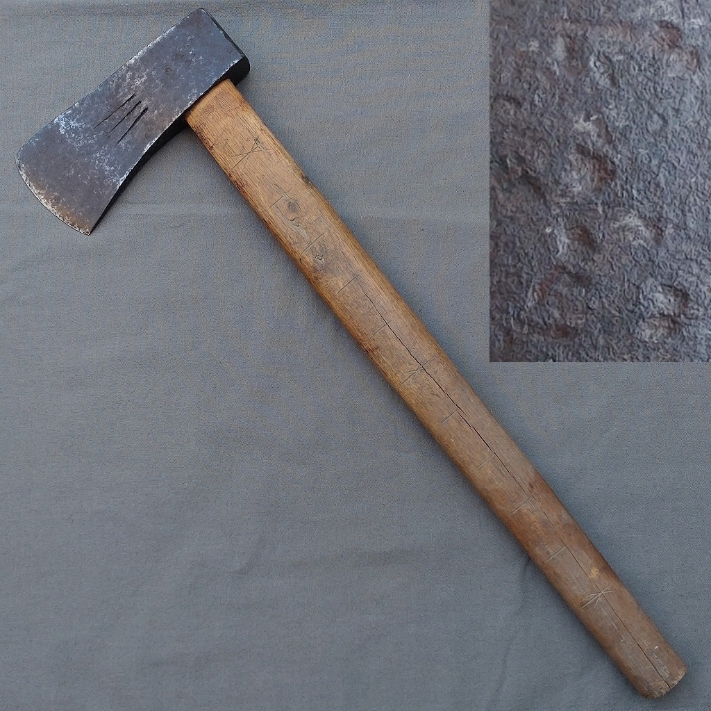 > 斧 おの オノ 在銘 刃長約62㎜ 全長約445㎜ 重量約750g 古斧 槙割り キャンプ アウトドア 【3896】