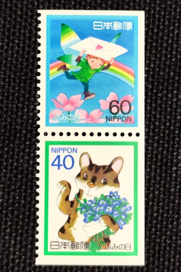 - [25040939]【ふみの日・1988年】単片2種「ねこと手紙・妖精と手紙」40円+60円 1988年発行 美品
