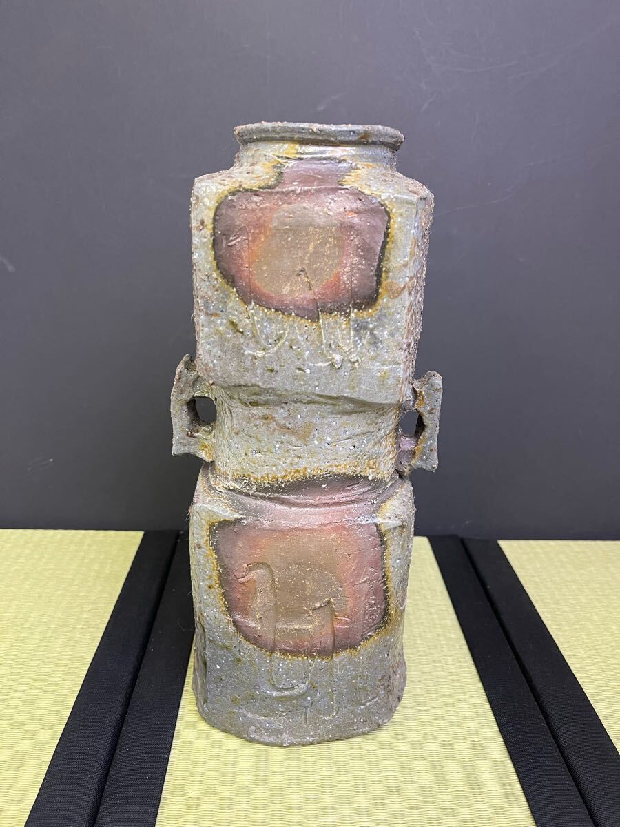 - 備前 窯変 在銘 オブジェ 花入 耳付 花器 壺 置物 うぶだし