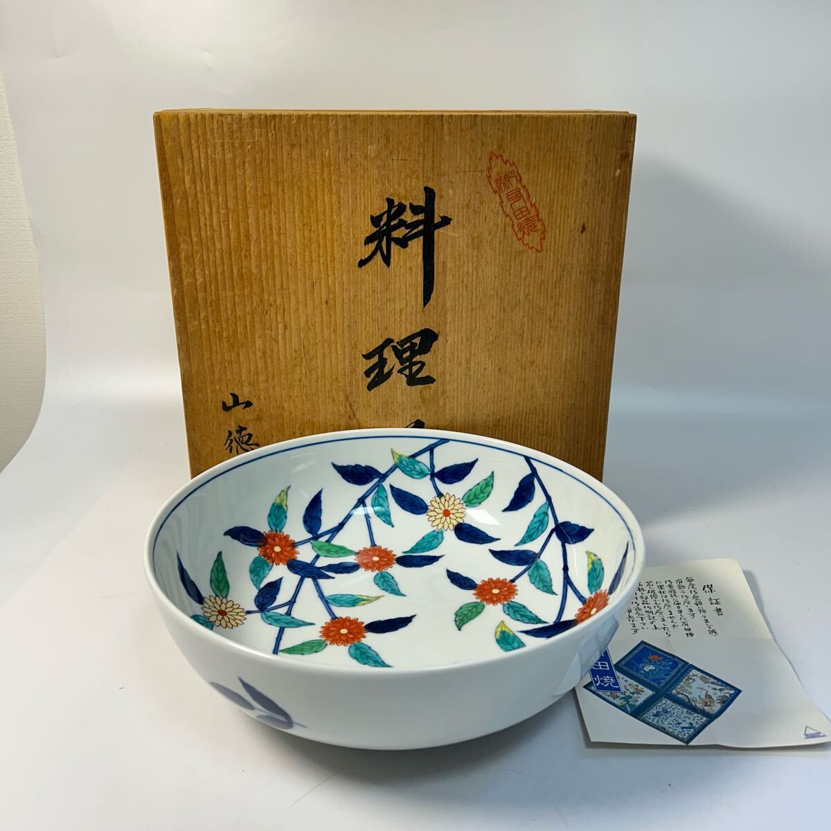 - 鉢 大鉢 有田焼 山徳窯 陶器 染錦花文 和食器 木箱 27cm ミ21