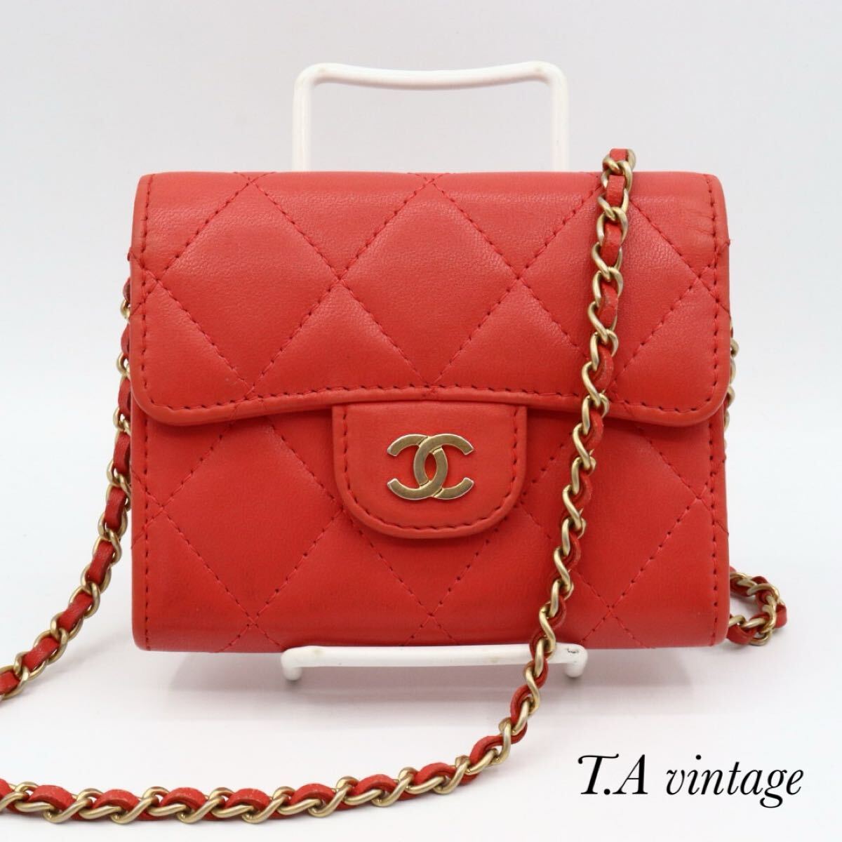 - CHANEL 美品 シャネル ラムスキン マトラッセ チェーンウォレット 長財布 レッド