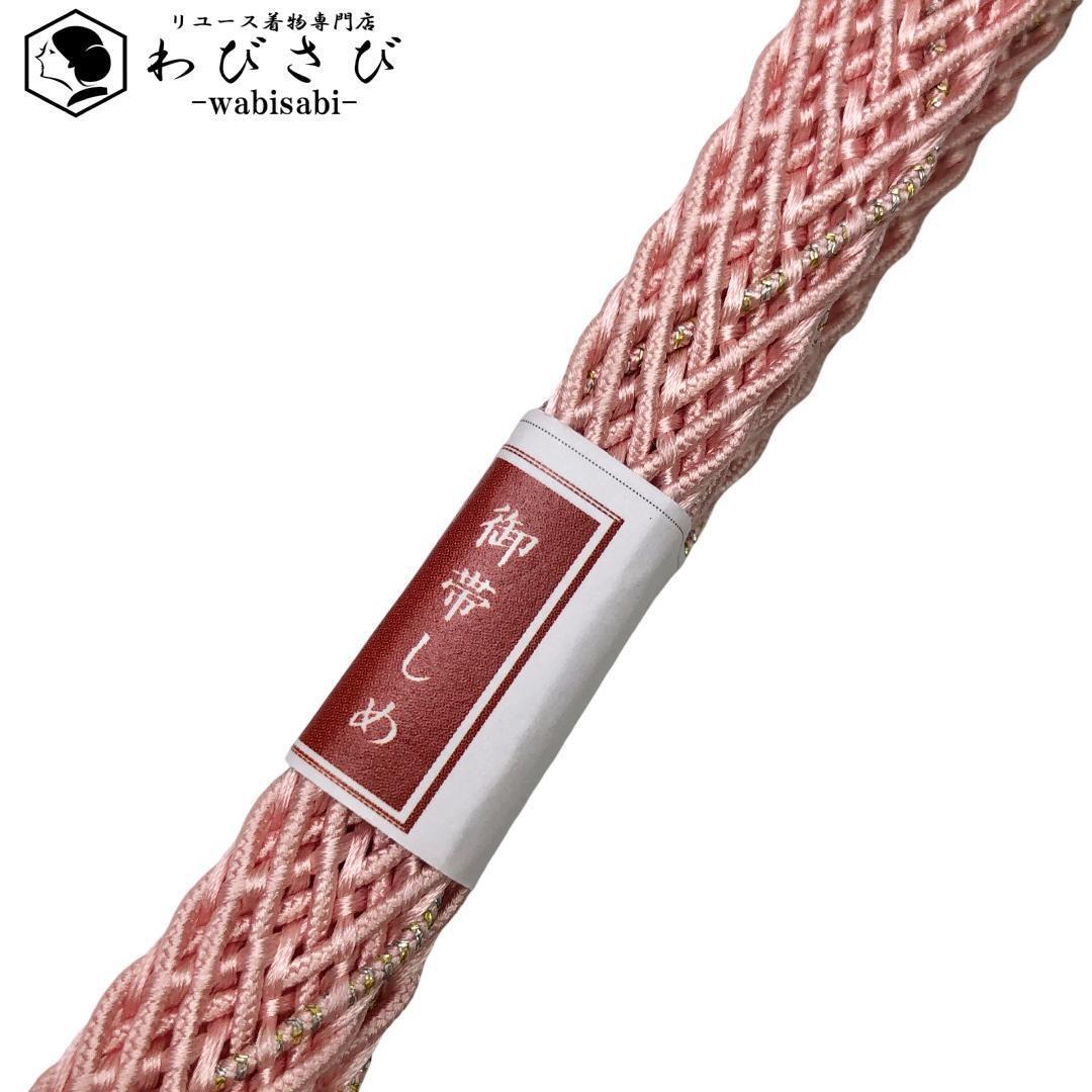 - 和装小物 帯締め 正絹 夏物 平組紐 組紐 浅紅色 金銀糸 C-5709 着物 きもの kimono 和服 和装 中古 リサイクル着物 【送料無料】