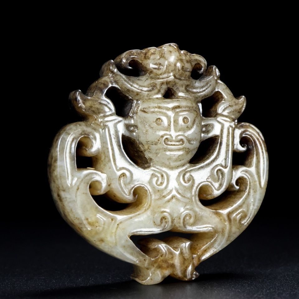 - 清 古和田玉彫 双色 玉璧 双面 鏈有 箱有 極細工 古賞物 古美味 東洋彫刻 時代物 骨董 中国古美術