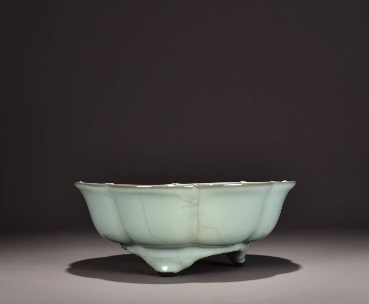 - ▽鴻▽ 宋 官窯 天青釉 蓮洗 古陶瓷品 置物 古賞物 中国古玩 中国古美術