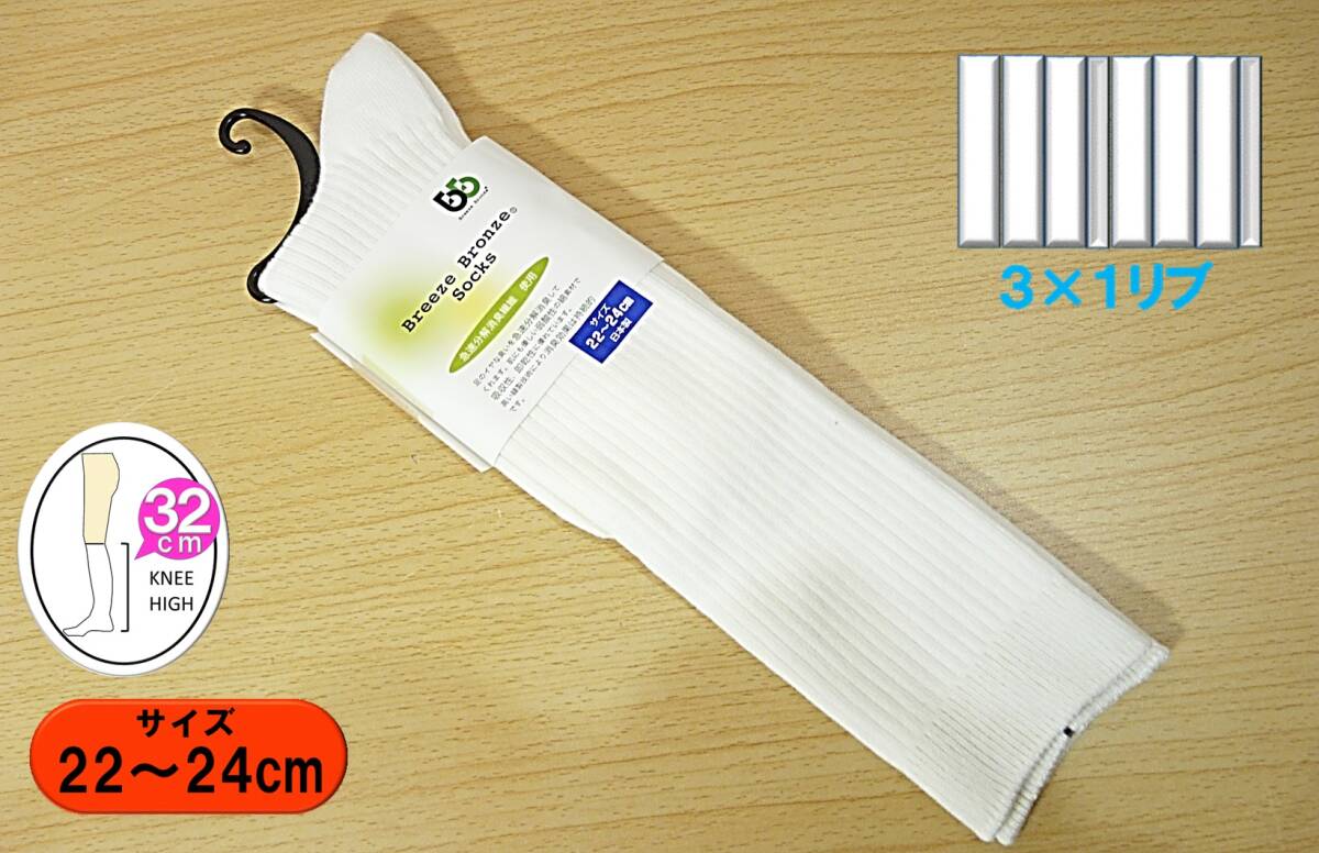 > 【レッグウェア★未使用品】Breeze Bronze◆白リブ ハイソックス◆3×1リブ◆22-24cm◆32cm丈◆急速分解消臭繊維 使用◆