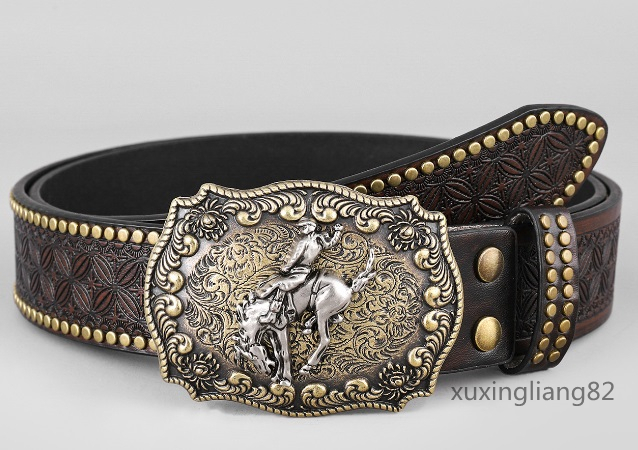 - 新販売 高級感ベルト ウェスタン風 PUレザー ベルト メンズ 金属バックル 紳士ベルト 茶色