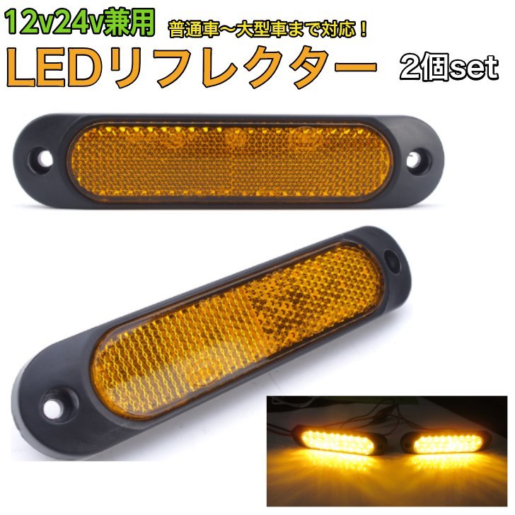 > 12V 24V 汎用 楕円形 LED リフレクター スモール ウィンカー アンバー 黄 反射板 バック サイドマーカー 2個 普通車 軽トラ トラック B