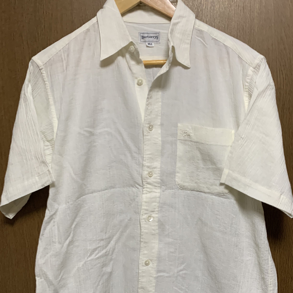 - MA【Burberry|半袖シャツ】バーバリー ベージュ/生成り系 麻30%混 シワ加工