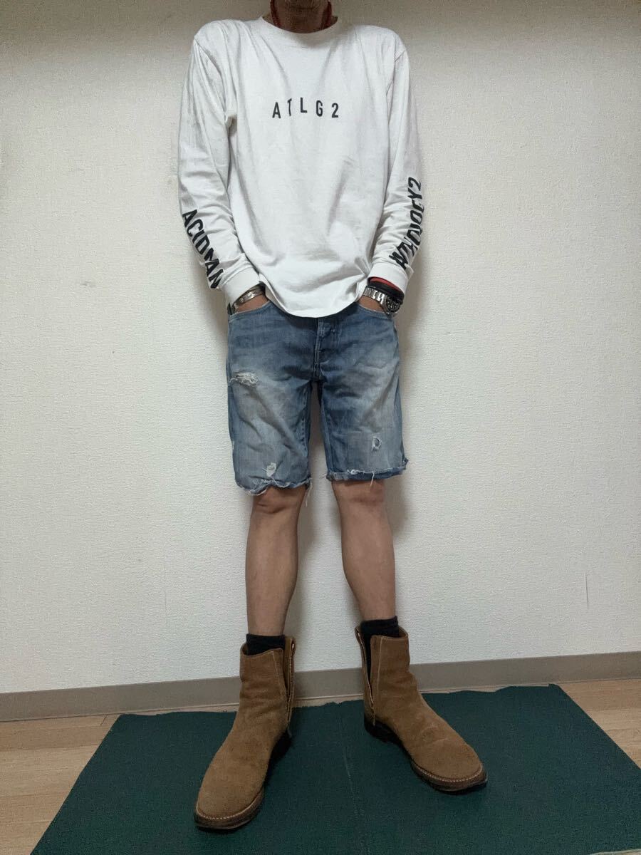 - G-STARビンテージ加工3301カットオフ デニムショーツ