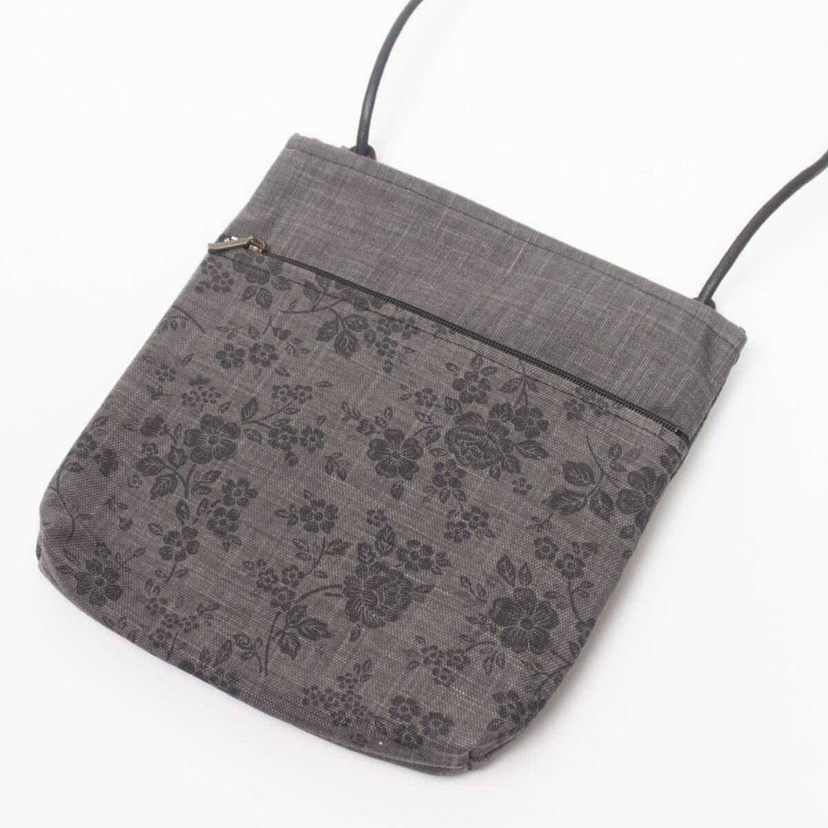 - 新品 和柄 墨/備長炭染 コットンポシェット サコッシュ ブラック 小華