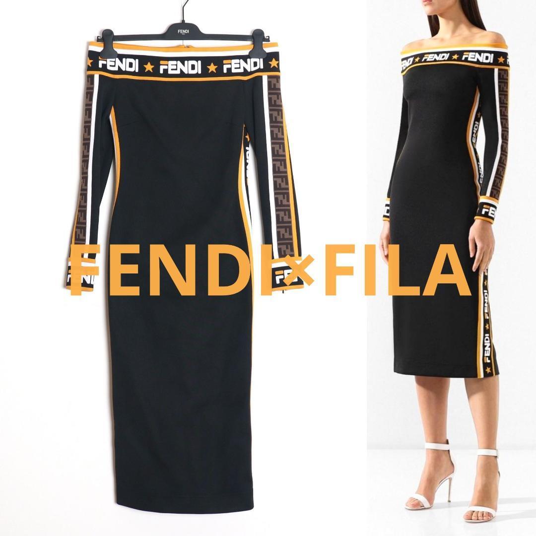 - FENDI×FILA 新品 18AW オフショルダードレス 38 国内正規品ワンピース ジャージー ロング丈 ミディアム丈 ストレッチ トラック CHANEL関連