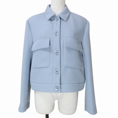 > エストネーション ESTNATION 20SS ショートカバーオールジャケット ハリ感 パッチポケット 38 M相当 サックスブルー X レディース