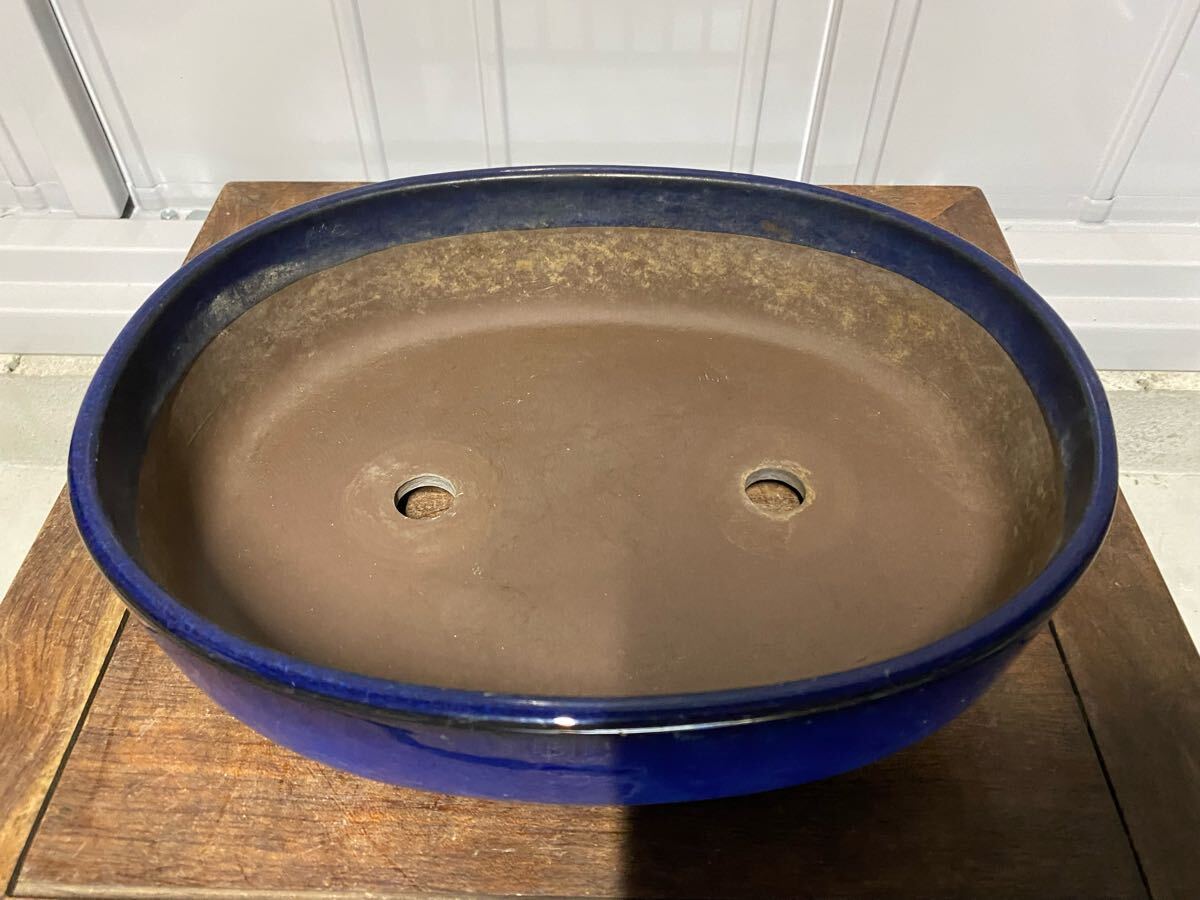 - 盆栽鉢 楕円 青 釉 小品盆栽 松盆栽 松柏 寄せ植え 観葉植物 多肉植物 山野草 草花 花 雑木 園芸 ガーデニング 鉢 植木鉢