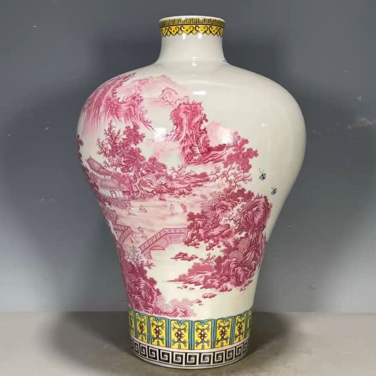 > 【伝世蔵品】中国古美術 古玩 唐物旧蔵 清代乾隆臙脂紅開運山水古瓶 極細工 置物 擺件 古賞物 風水物 鎮宅 骨董品 中国骨董 大珍品T