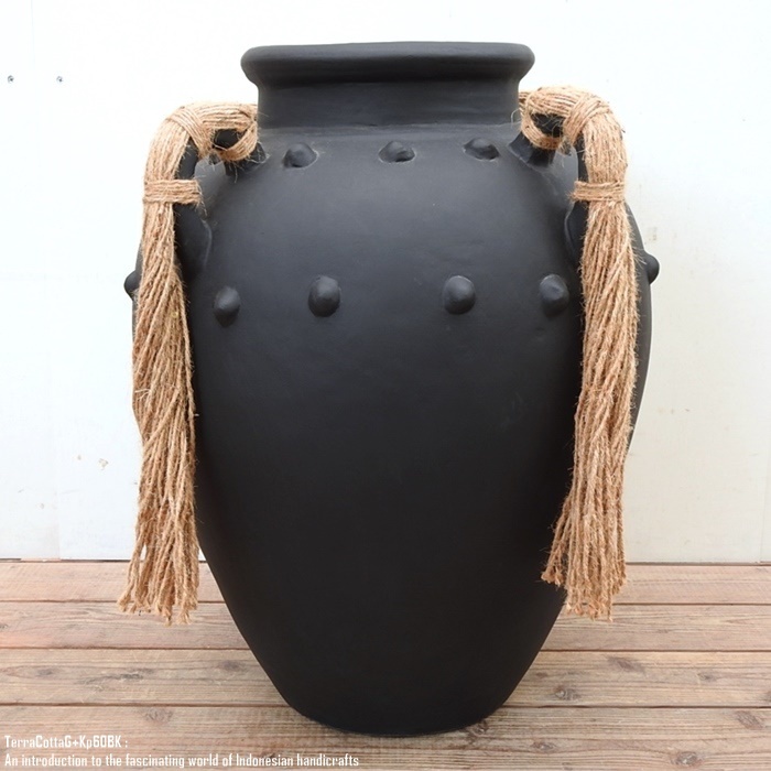 - テラコッタ フラワーベース 60cm マットブラック トール 大型 アートプランツ 大壺 重厚 非光沢 造花 花瓶 ドライフラワー 水入れ不可