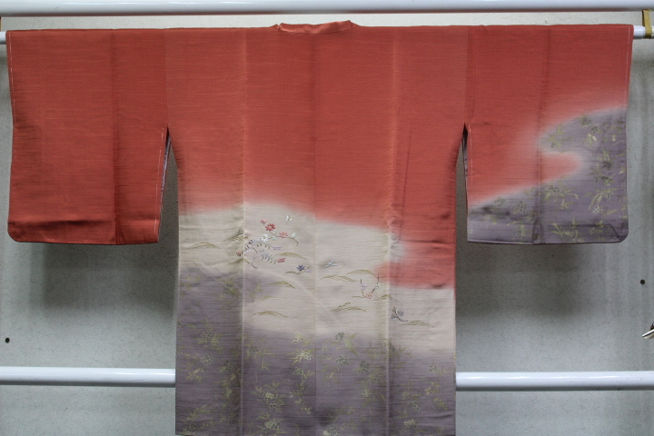 - きもの今昔8416 道行コート 高級絵羽柄付けコート 天地色分け手刺繍入り 金加工入り シツケ付き未使用品