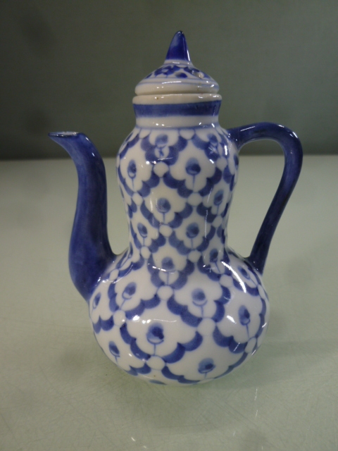 - タイ式 青白陶器 ソースポット タレ入れ パイナップル柄皿 新品購入個人保管品 美品中古